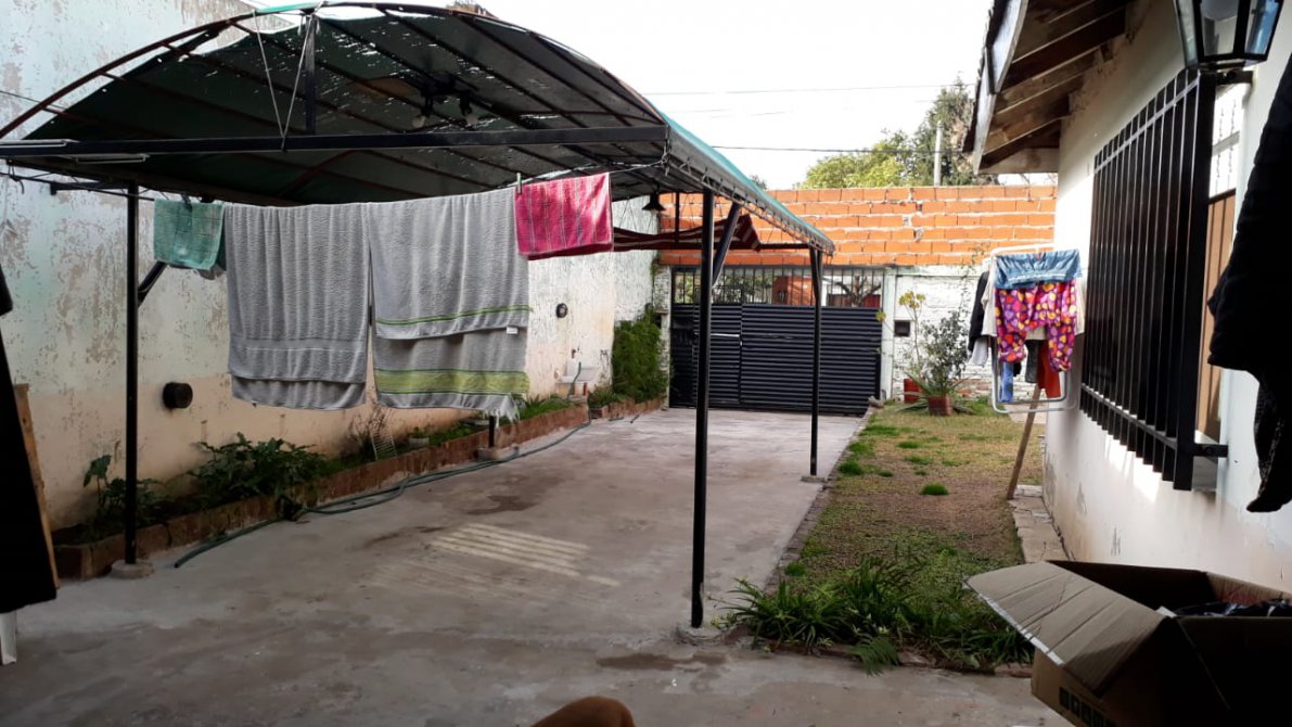 Patio con entrada de auto con portón automático y toldo con lona, cocina comedor, dormitorio, lavadero cubierto, Baño, dormitorio ppal.