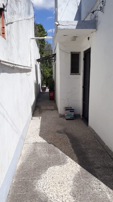 Entrada x pasillo, jardín al ingreso a la unidad al frente, cocina comedor compartimentada, paso a dormitorio amplio, dormitorio ppal amplio con placard, 2do.dormitorio, baño, living comedor, patio con mosaico de granito, lavadero, cuarto de enseres, amplio fondo (parte mosaico y jardin).