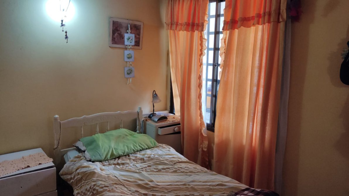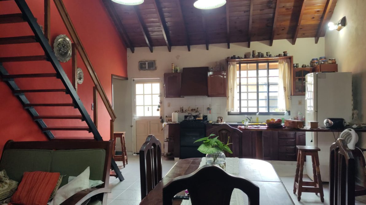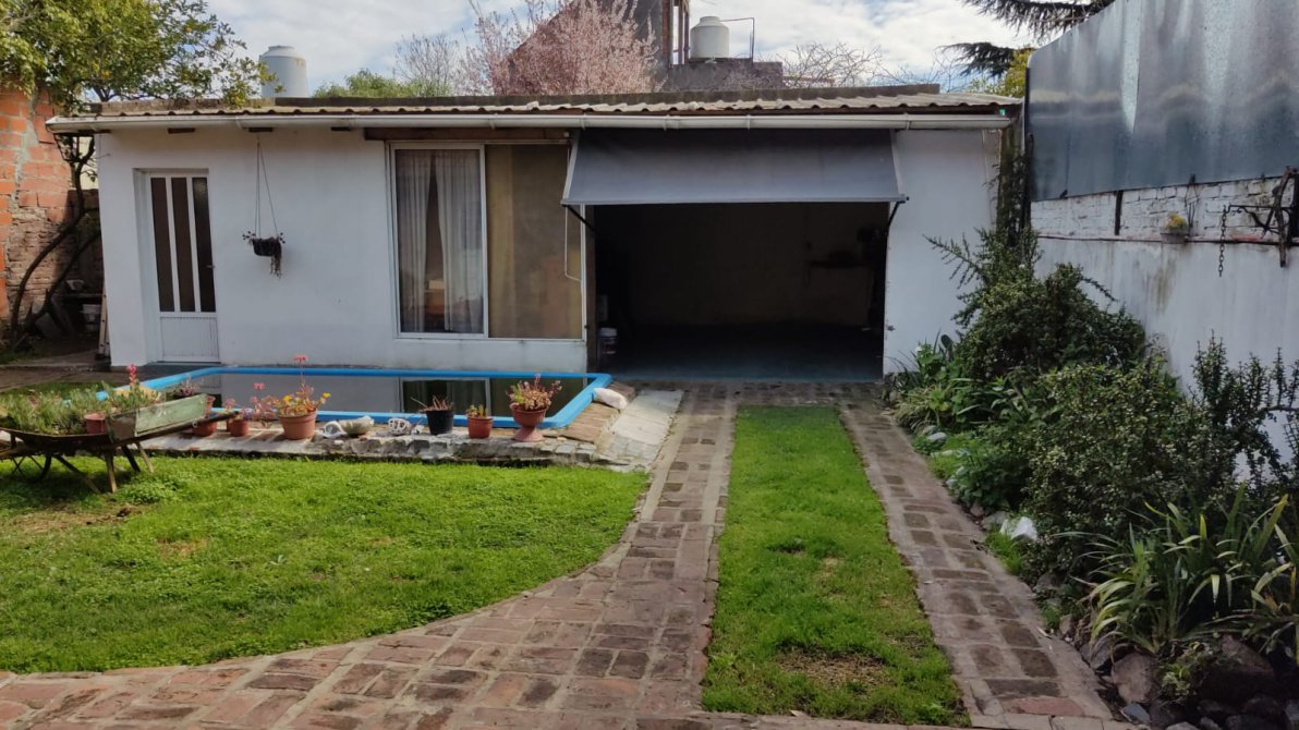 Porton corredizo, jardín, garage para 2 autos cub, pasante (dos mas descubiertos), fondo libre con pileta (plastica), cuarto de enseres (chapa), otro cuarto separado, parrilla afuera, cocina comedor con desayunador, living estard, baño amplio, dormitorio al frente (con placard), 2do dormitorio al contrafrente con Placard, playroom en planta alta o 3er dormitorio. Ambientes muy comodos, carpinteria de madera.