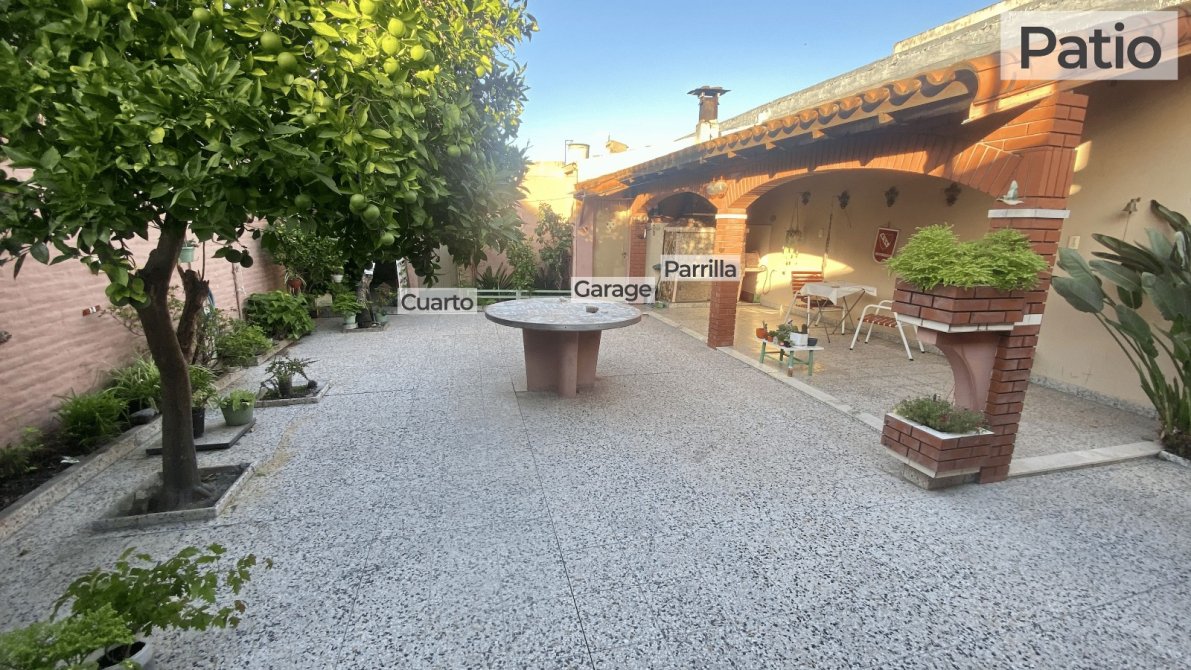 Chalet con salida a dos calle. Rejas al frente sobre Constitucion, Living comedor muy luminoso, cocina comedor, lavadero cubierto, 2 dormitorios con Placard, baño completo. Patio interno amplio con quincho y parrilla, garage cubierto, cuarto de enseres.