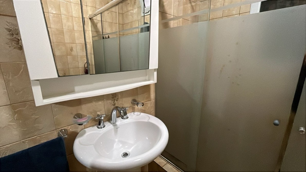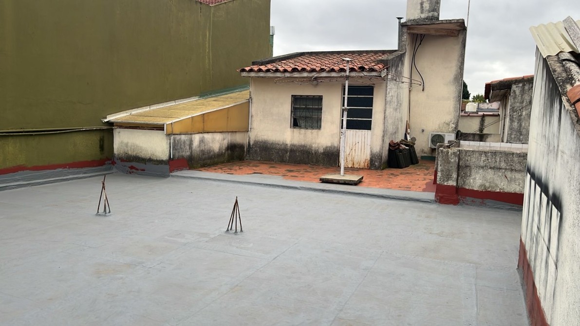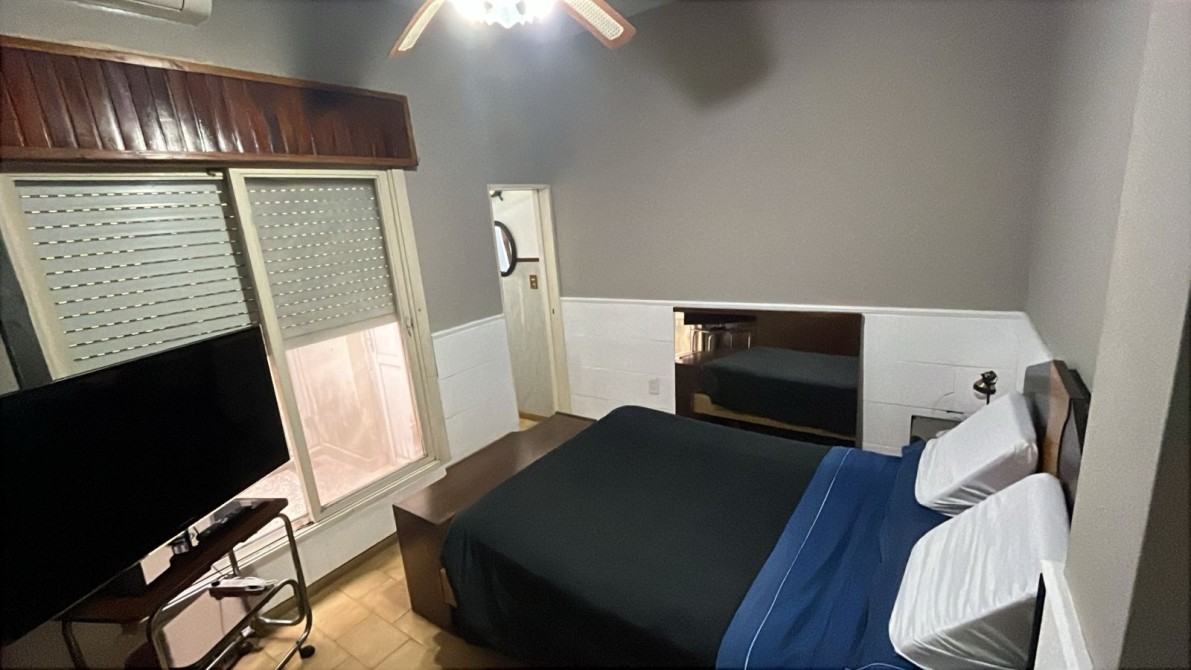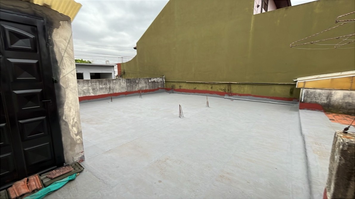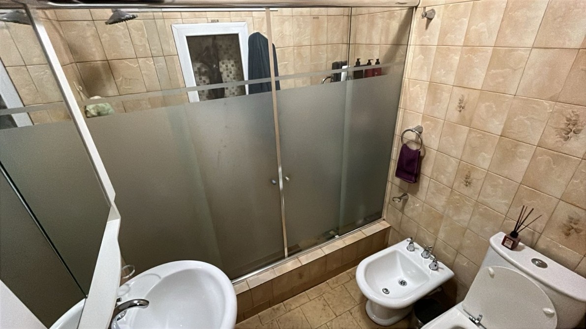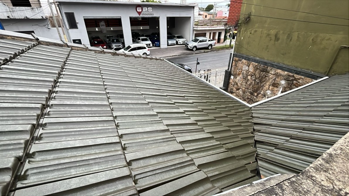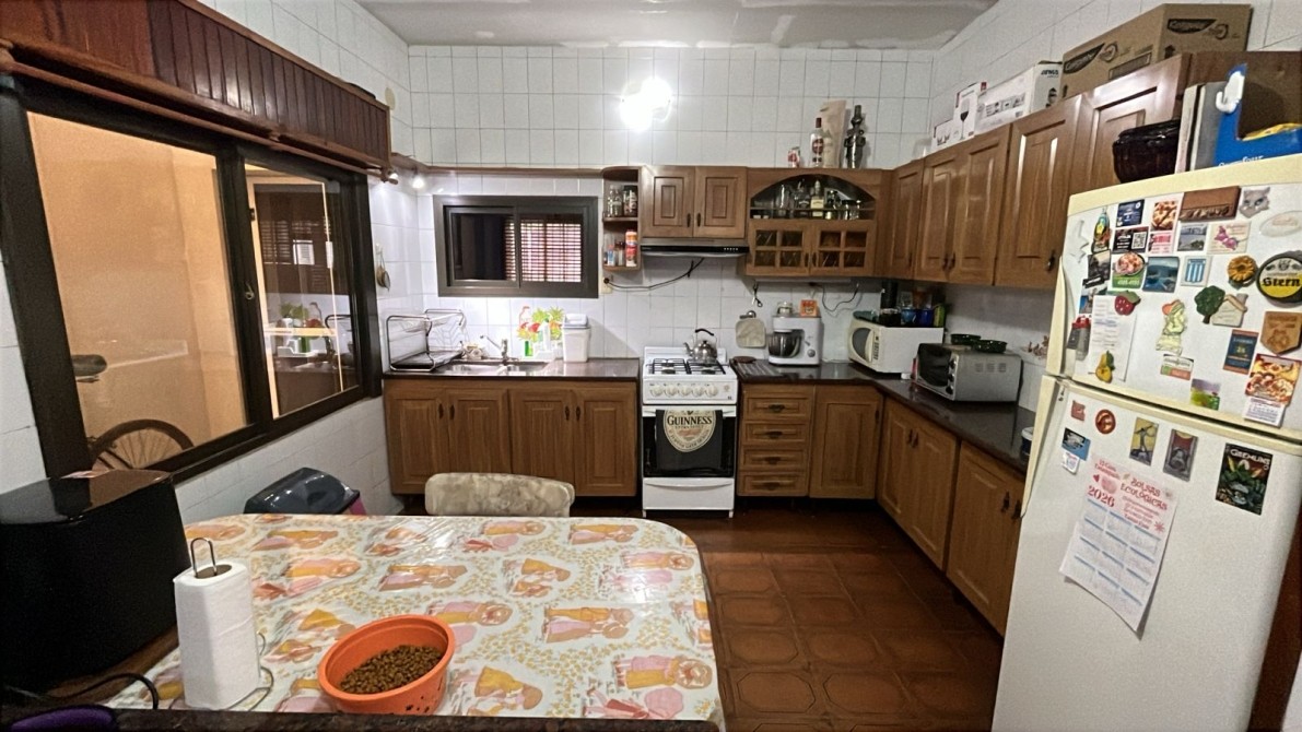 Jardin con rejas. Local al frente (ocupando lo que fuera el garage y un dormitorio). Recepción, biblioteca, baño, bajo escalera, comedor, patio interno con escalera terraza con lavadero, cocina bajos y alto mesada, dormitorio con baño en suite, patio interno, quincho (parrilla a gas y cocina) con entrepiso metálico y ambiente tipo dormitorio, fondo libre chico.