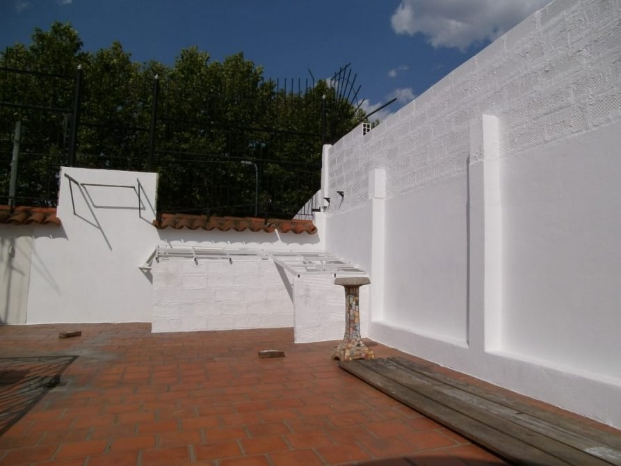 Garage cubierto, Dormitorio o living con piso de parquet y placard, baño, galería nueva, dormitorio o comedor, cocina comedor, patio y lavadero, terraza con buhardilla.