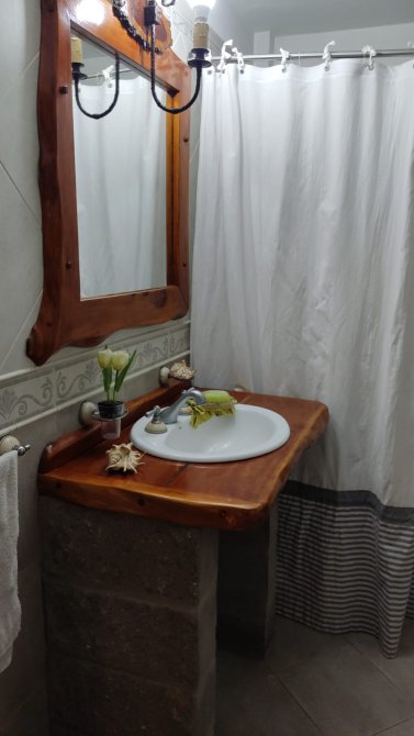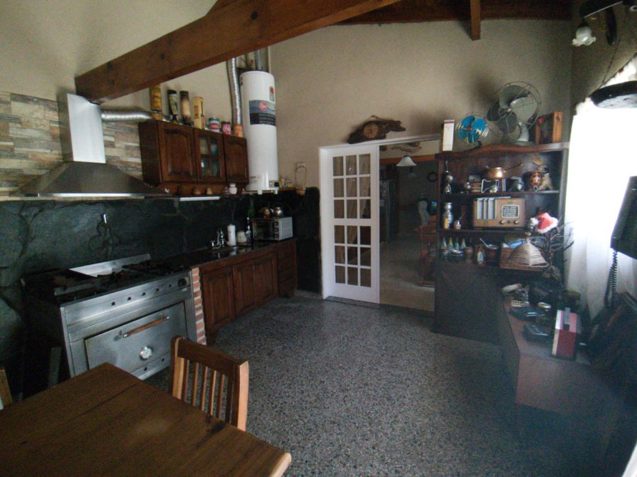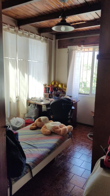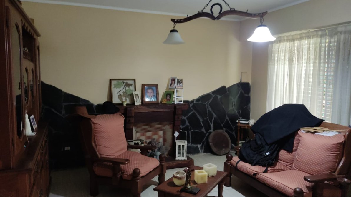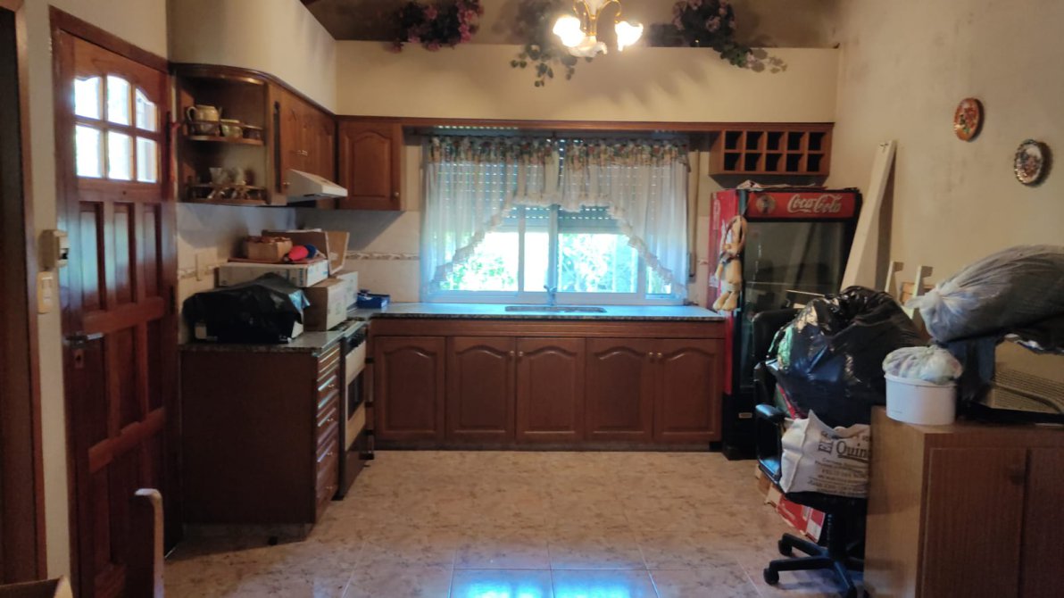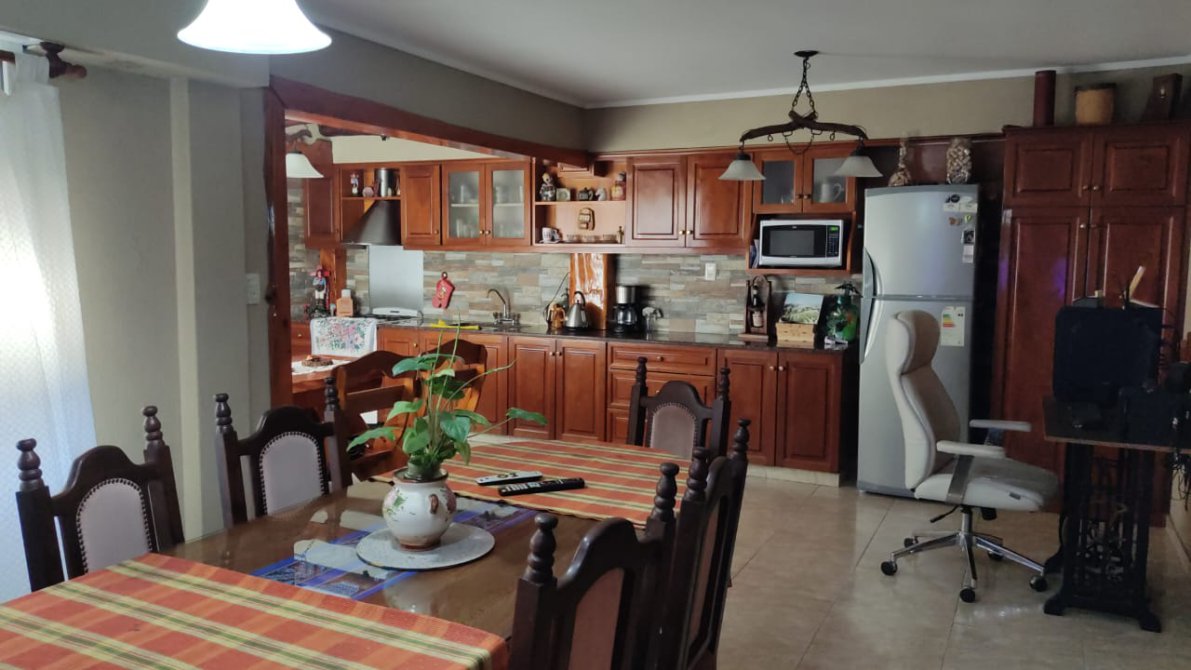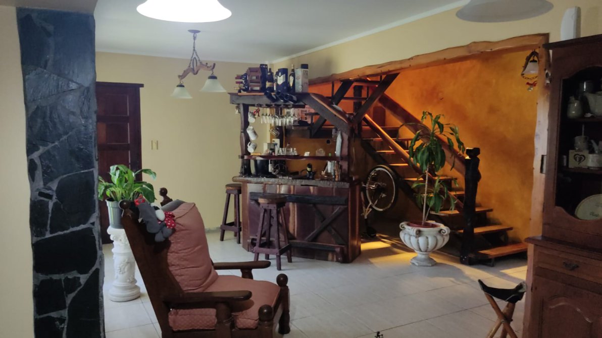 Amplio Jardín al frente con rejas y portón corrediso, living comedor (rustico), baño completo, cocina comedor (muebles de padera macisa alacena y bajomedada), garage pasante 1 cubierto, quincho amplio con parrilla baño, cuarto de enseres o habitación de servicio, amplio jardin interior y al contrafrente cocina comedor, baño amplio, dormitorio amplio.